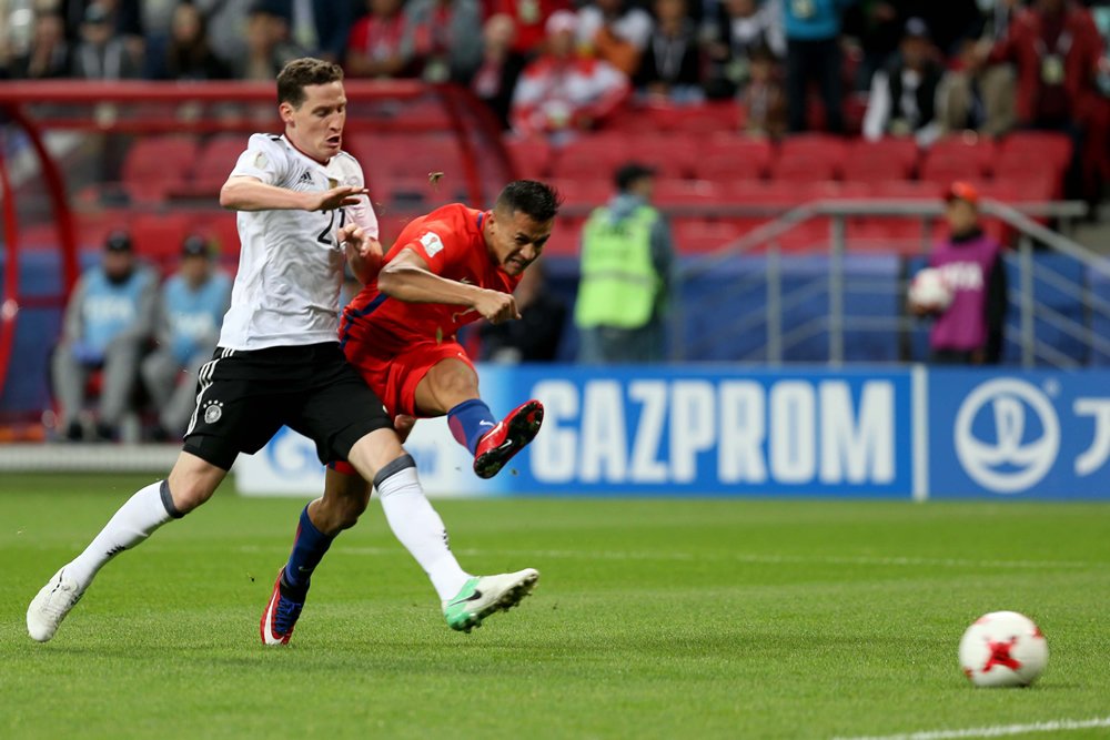 Highlight Gol- Berawal dari kesalahan pemain belakan Jerman kemudian di manfaatkan dengan permainan satu dua antara Arturo Vidal dan Alexis Sanchez, berakhir dengan sepakan datar Alexis Sanchez pada menit ke 6 yang mengenai tiang dalam dari gawang Jerman yang di jaga oleh Marc-Andre ter Stegen.